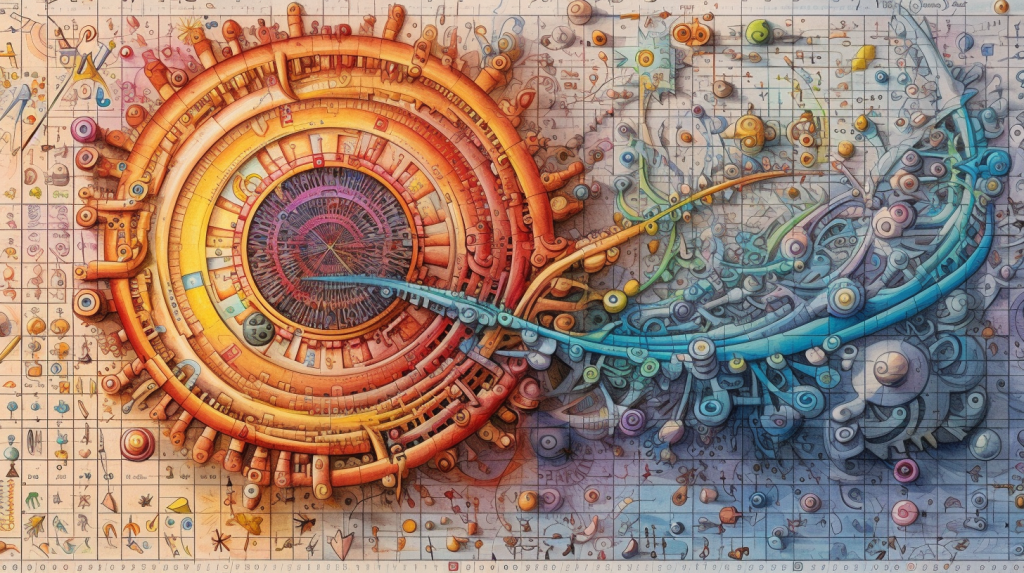 /imagine prompt: A highly detailed colorful drawing. Using a parametric equation to create captivating art. x(t) = A * cos(a * t) * cos(t) + A * sin(b * t) * cos(t) and y(t) = A * cos(a * t) * sin(t) + A * sin(b * t) * sin(t), Where ‘A’, ‘a’, and ‘b’ are constants, and ‘t’ ranges from 0 to 2π. –ar 16:9